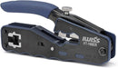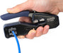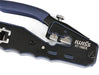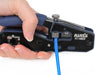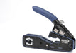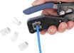 貫通タイプのモジュラープラグ成端をスピーディに。圧着・切断・被覆剥きまで完結し、配線を先端から通してそのまま圧着すると余分なワイヤーを同時にカット。仕上がりが整い、初めてでも扱いやすい設計です。一般的な非貫通タイプのプラグにも対応します。