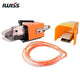 - 工具キット内容:①エアー式フェルール圧着機 AM 6-4、 ②エアーホース(フッ素樹脂製x2本)、 ③フットスイッチ