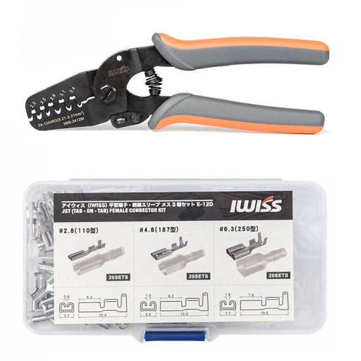 アイウィス(IWISS) 平型端子 スリーブ オス・メス 計270点 配線作業に オープンパレル端子 汎用圧着ペンチ IWS-1424A + 270KIT
