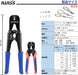 - 特徴:①トグル機構採用で単位ストロークあたりの所要握力を軽減。②クリンプハイト調節ダイヤルで経年劣化による圧着力低下を再修正が可能に、③ワイヤーカットされた刃により正確に圧着。