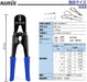- 特徴:①トグル機構採用で単位ストロークあたりの所要握力を軽減。②クリンプハイト調節ダイヤルで経年劣化による圧着力低下を再修正が可能に。③ワイヤーカッター機能装備