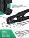 - 特徴:①トグル機構採用で単位ストロークあたりの所要握力を軽減。②クリンプハイト調節ダイヤルで経年劣化による圧着力低下を再修正が可能に